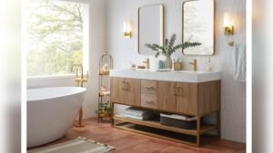The bathroom is more than just a functional space; it’s a retreat from daily stress. The organic modern bathroom design